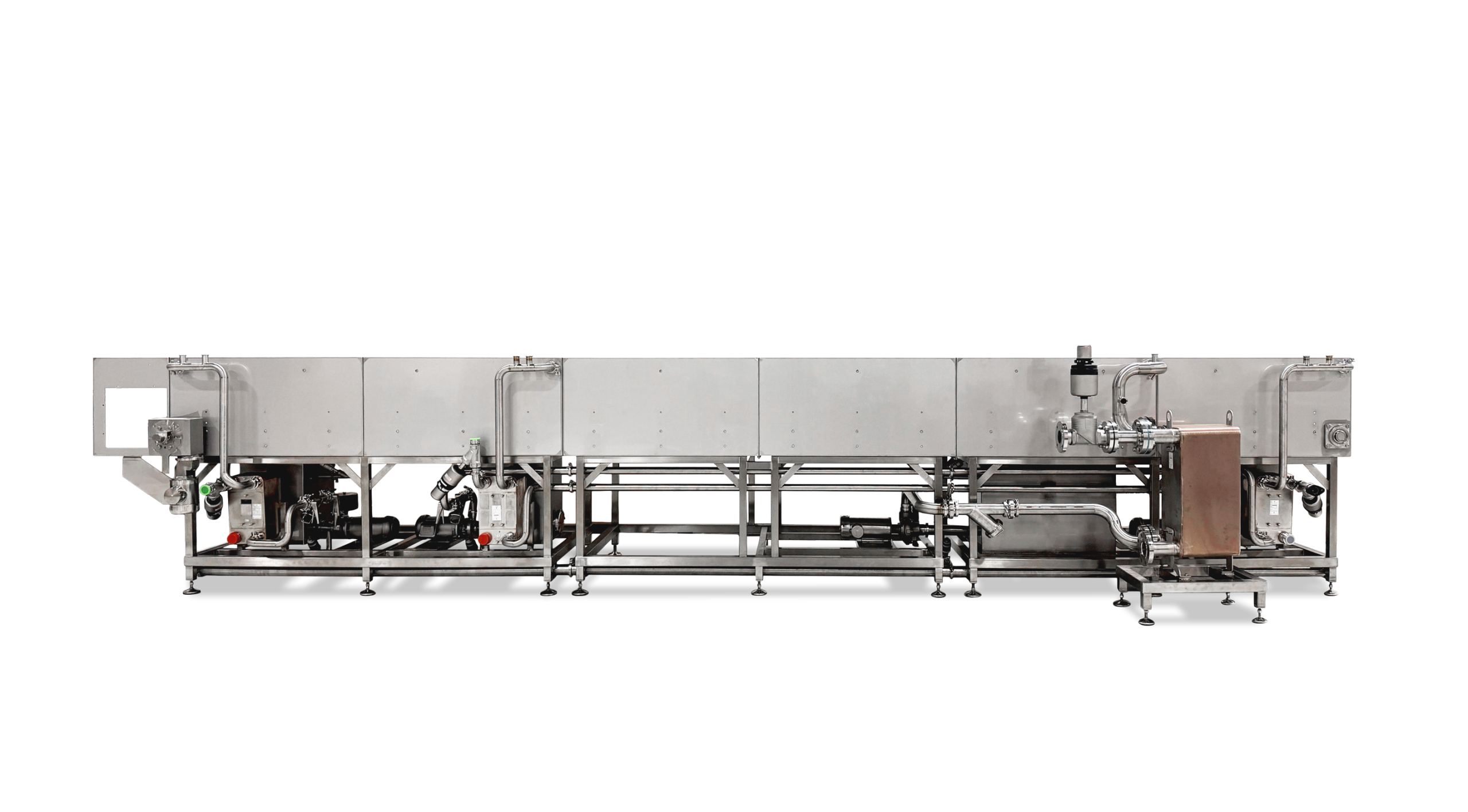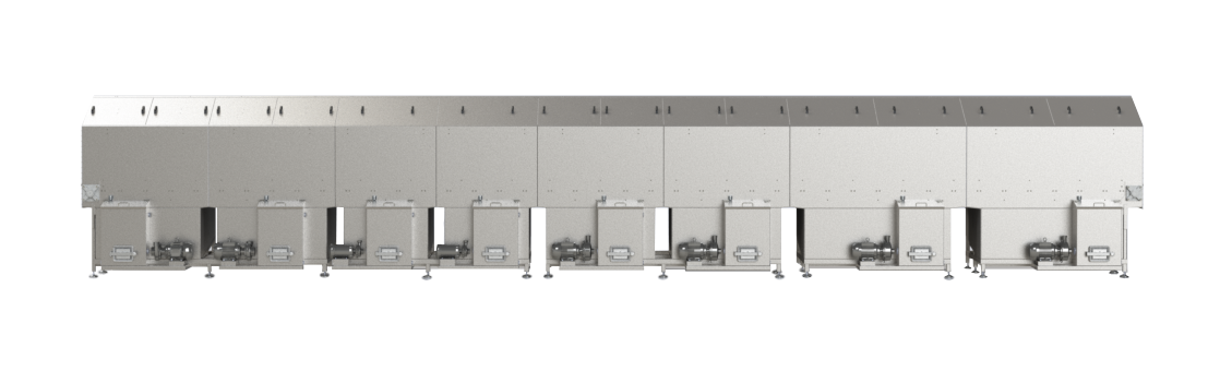 Precision cooling for canned, bottled and other packaged products be it food, beverage or pharmaceuticals. Our cooling tunnels are designed to provide precise and controlled cooling for a wide range of products, ensuring they reach the ideal temperature for packaging, storage, or distribution. Whether used for post hot-fill cooling, pasteurization processes, or temperature-sensitive applications, our tunnels guarantee optimal product integrity, extended shelf life, and enhanced production efficiency.
