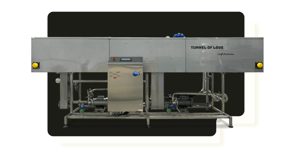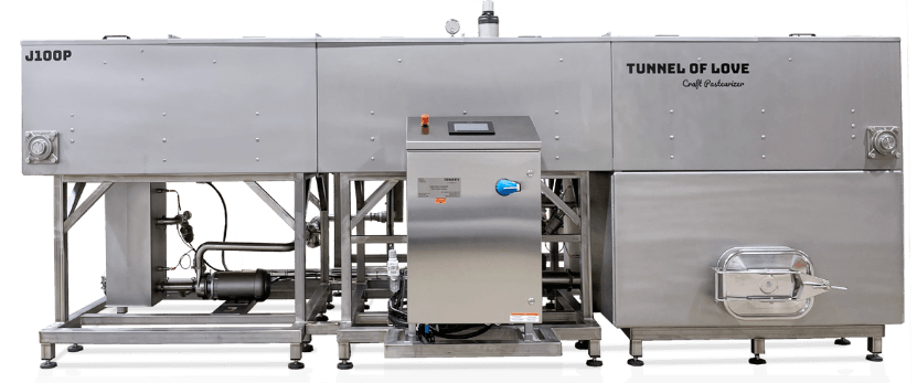 As the product moves through the tunnel it is heated to a pasteurization temperature of 66°C (150°F) and held at that temperature for a defined period of time before being cooled back down to stop pasteurization.